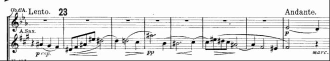 Both of these works highlight the Wagnerian influence in Holbrooke’s writing. His use of the saxophones expanded on how French composers were writing for the instrument, he often doubled up the woodwind or the brass section with the saxophones, using the instrument in both families.