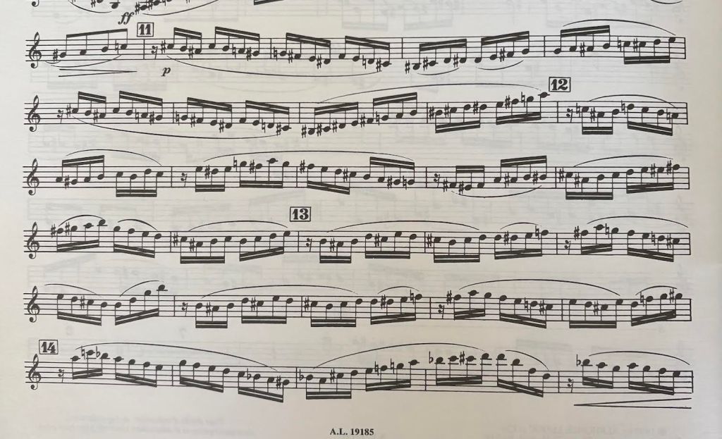 Now I have to admit, this movement surprised me. If your only knowledge of Ibert is the Concertino da Camera, this movement is lush and impressionistic, this solo is followed by the flamenco guitar. The writing is cinematic, with only hints of neo-classical style. Now comparing the above solo to Concertino da Camera showcases many similarities and a few noticeable differences. Below is the section that often gets compared to bebop.